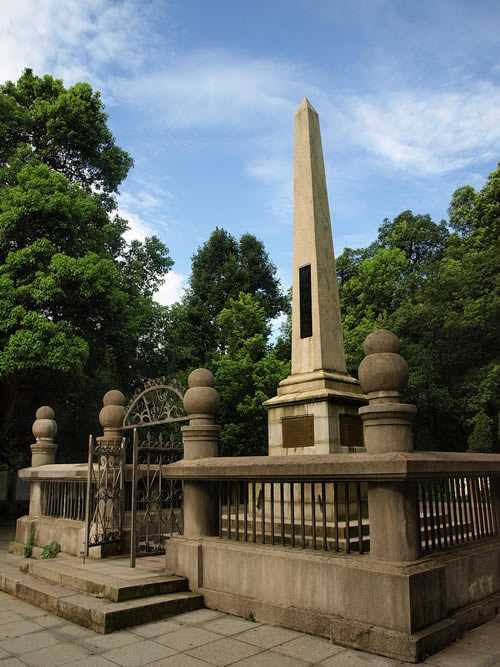 在岳麓山上。墓由三層臺階百余級踏步導(dǎo)入,墓碑為一四棱形的整塊4乳白色巖石琢成,全高約10米,因地處岳麓山高峰開闊處,顯得格外聳拔、挺秀、眺望湘江江,長沙景物盡入眼底。黃光(1874—1916),朱名軫,號杞園,又號克強(qiáng),湖南善化(今長沙)人,辛亥革命重要領(lǐng)導(dǎo)人,史有“孫黃”之稱。1904年組織華興會,翌年8月與孫中山、章太炎等人組織中國同盟會,曾生動并領(lǐng)導(dǎo)欽州、廉州(治今廣西合浦)、鎮(zhèn)獻(xiàn)花(今友誼關(guān))、河口、廣州等地區(qū)反清戰(zhàn)役起義,任民軍戰(zhàn)時總司令。南京臨時政府成立,任陸軍總長。袁世凱稱帝后,任討袁軍總司令。1914年赴美醫(yī)病,1916年病重回國,10月31日于上海病故,時年43歲,次年移柩長沙,國葬于岳麓山。為全國重點文物保護(hù)單位。