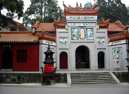 在岳麓山半腰,系晉初古寺,是佛教人湘最早的一所大寺。明神宗時 更名為萬壽寺,民國初年復名,古麓山專。唐代大詩人杜甫曾用“寺門高開 洞庭野,殿腳插入赤沙湖”的詩句稱頌殿字宏大。大雄寶殿等主要建筑,于 1944年被炸毀,僅存山門和觀音閣,現(xiàn)已修整一新.山門上有“古麓出寺” 的橫額,兩旁為“漢魏最初名勝,湖湘第一道場"對聯(lián),門外古楓參天,濃 蔭覆蓋,門內(nèi)園圃百花爭艷。觀音閣為磚木結構,1955年曾加以修葺,1980 年再次修整恢復原貌,并在廳堂神龕中置觀音像。閻內(nèi)常舉辦小型書畫展 覽。觀音閣前有兩株羅漢松,左邊一株是六朝遺跡,稱“六朝松",樹 齡在1700年以上, 是岳麓山植物界的"元老", 老干新枝,紛繁翁 郁,彌足珍貴;右邊一株于清代被巨風拔去并被清代人補植。兩棵古松 并峙于閣前,游人樹下經(jīng)過,若入關隘,故有“關松"之稱。
