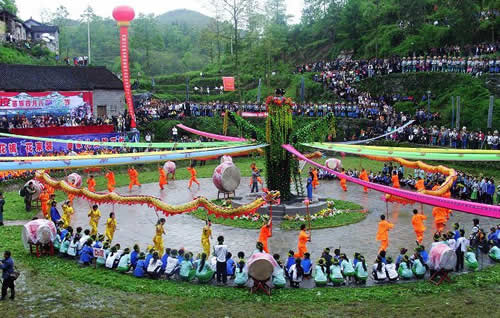鮮麗奪目的苗族服飾,情調(diào)別致的攔門酒,風(fēng)格獨(dú)特的卡鼓、攔路歌、邊邊場,會使你耳目一新,如癡如醉;還有傳統(tǒng)節(jié)日"四月八"的跳月跳花,"六月六"的山歌對唱,又會使您心動神搖,嘆為觀止。
