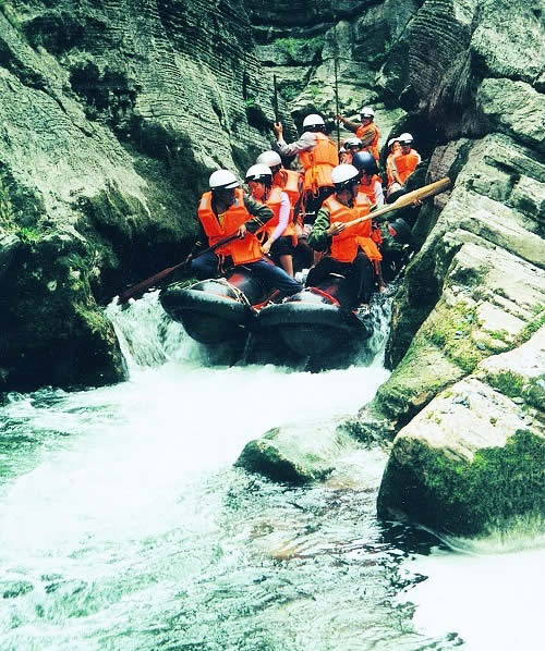 西門峽漂流全程6公里,屬萬溶江流域,它發(fā)源于兩頭羊自然保護區(qū)的群山之中;沿途危崖夾峙,樹木蔥榮,水質清澈、急流、險灘星落棋布。共有虎跳澗、白龍灘、臥龍灘、青龍峽、鬼見愁、龍王灘等急流險灘30余個。其中以青龍灘最為著名,它全長400米,落差20余米。它和龍王灘一道堪稱國內漂流之經典。