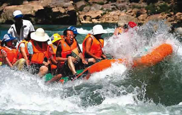 茅巖河是澧水的上游一段,這里有橡皮舟漂流的旅游項(xiàng)目,游人乘橡皮船順?biāo)鳎瓤梢孕蕾p美麗的峽谷風(fēng)光,又可領(lǐng)略到急流險(xiǎn)灘的驚險(xiǎn)與刺激。