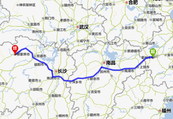 現(xiàn)在位置:張家界旅行社->交通指南->自駕車(chē)路線 -> 衢州到張家界旅游自駕車(chē)線路,衢州去張家界自己開(kāi)車(chē)要多長(zhǎng)時(shí)間,有多少公里