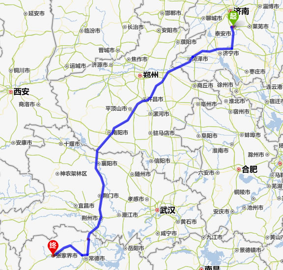 泰安去張家界自駕車自助游線路圖全程高速):