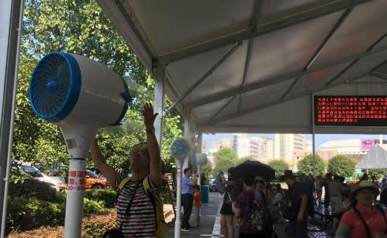 為更好的為游客防暑降溫,天門山景區(qū)特別在索道站、山門等候區(qū)增設(shè)大型遮陽(yáng)棚,作為游客等候休息區(qū),并在等候區(qū)內(nèi)安裝數(shù)十個(gè)室外冷霧降溫風(fēng)機(jī)和直飲水點(diǎn)。