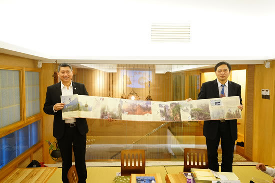 歐陽(yáng)斌向蘋果旅游集團(tuán)執(zhí)行主席李益輝贈(zèng)送紀(jì)念品