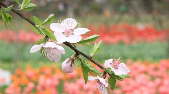 園內(nèi)的桃花開(kāi)得正艷,郁金香和桃花在一起的地方更是美上加美,成為游客拍攝最多的地方。由于游客眾多,經(jīng)常有人踏入花田中拍照,這可忙壞了現(xiàn)成巡邏的工作人員,筆者在此呼吁大家愛(ài)花更護(hù)花,文明欣賞。
