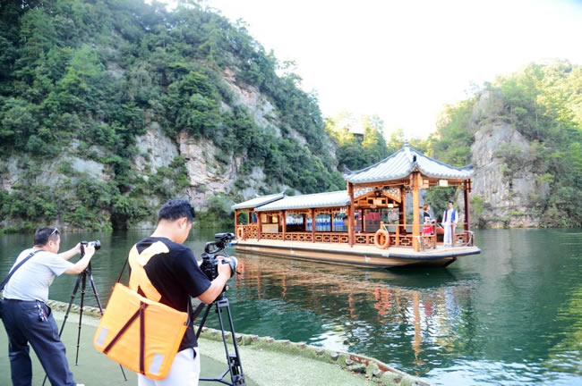在武陵源期間,攝制組一行先后對武陵源天子山、袁家界、百龍?zhí)焯、寶峰湖、黃龍洞、溪布老街等自然人文景區(qū)景點進(jìn)行了立體拍攝,屆時武陵源神奇美麗的地質(zhì)地貌風(fēng)光、多彩多姿的民俗非遺文化,都將在專題片中得到很好的展現(xiàn)。