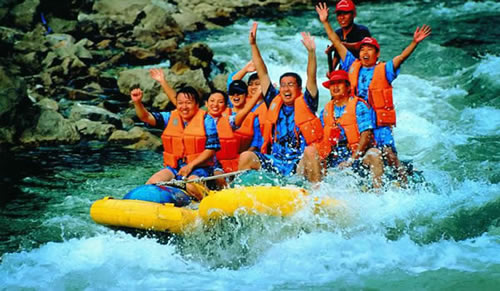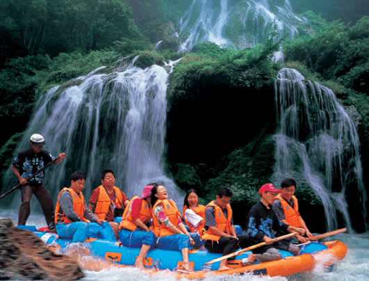 上 午:乘漂流公司專線車赴【猛洞河漂流】,(門票已含)赴漂流上站碼頭,體驗“天下第一漂”,起點哈妮宮距王村約40公里,行車1小時,終點牛路河距王村30分鐘的車程,漂流水路長17公里,漂流兩個半小時。從哈妮宮放舟而下,一路是古老的河道,哈妮宮、山腳巖、捏土瀑布、回首峽、落水坑瀑布、夢思峽、牛路河大橋等景點。絕壁百里,怪石嶙峋,灘奇水異,兩岸蒼翠的林木,云霧繚繞,飛瀑流泉與溶巖峰林交相輝映。拐一百五十五個彎,在一百三十三個灘潭中穿梭而行,迂回流連,馳魂奔魄,心曠神怡。猛洞河漂流被著名的社會學家費孝通先生譽為“天下第一漂”;